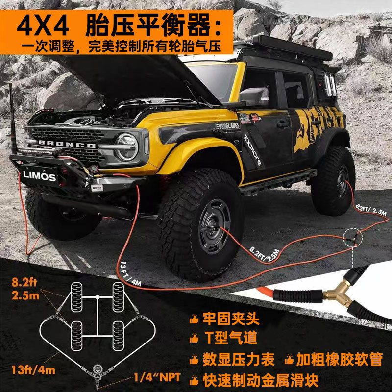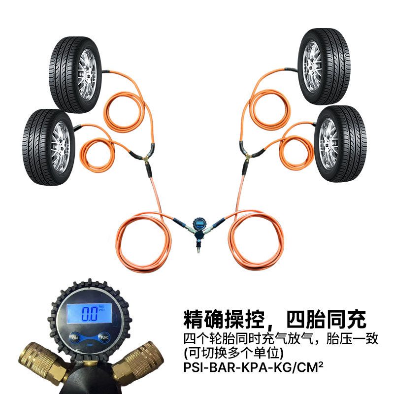 4 Tire Inflation Deflation System, Pressure Equalizer Fits Up To 155″ Wheelbase, Air Down Flexible Hose And Digital Gauge, Quick Connect Chucks