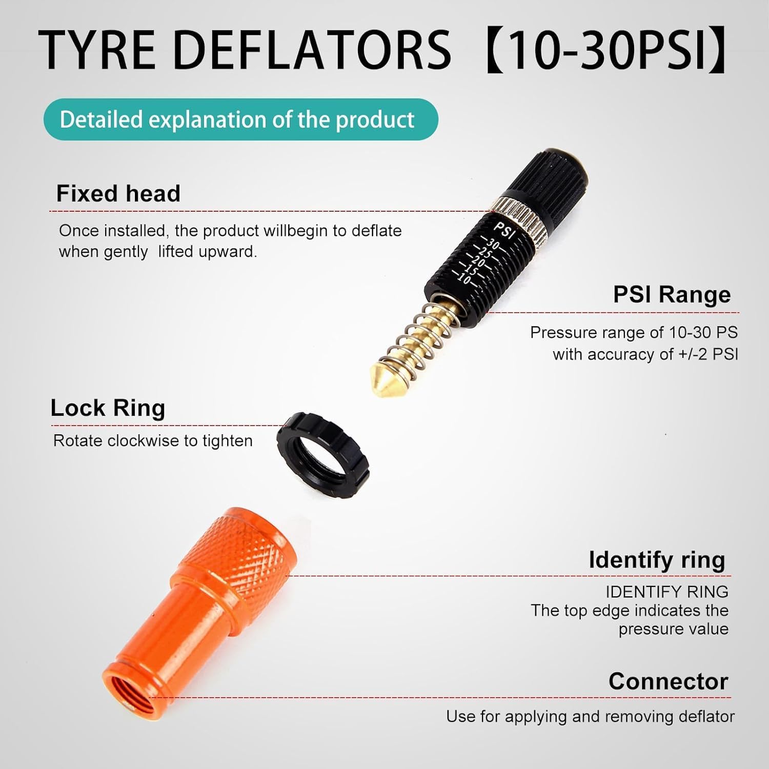 Adjustable Auto-Stop Tire Deflator Valve Kit(10-30 PSI),Screw-on Tyre Air Down Tool with Storage Pouch & Valve Cap,for Jeep, Truck, Motorcycle and ATV Vehicles(4Pack)