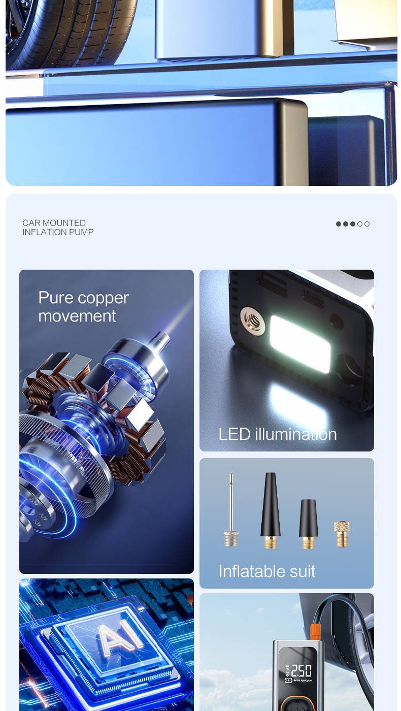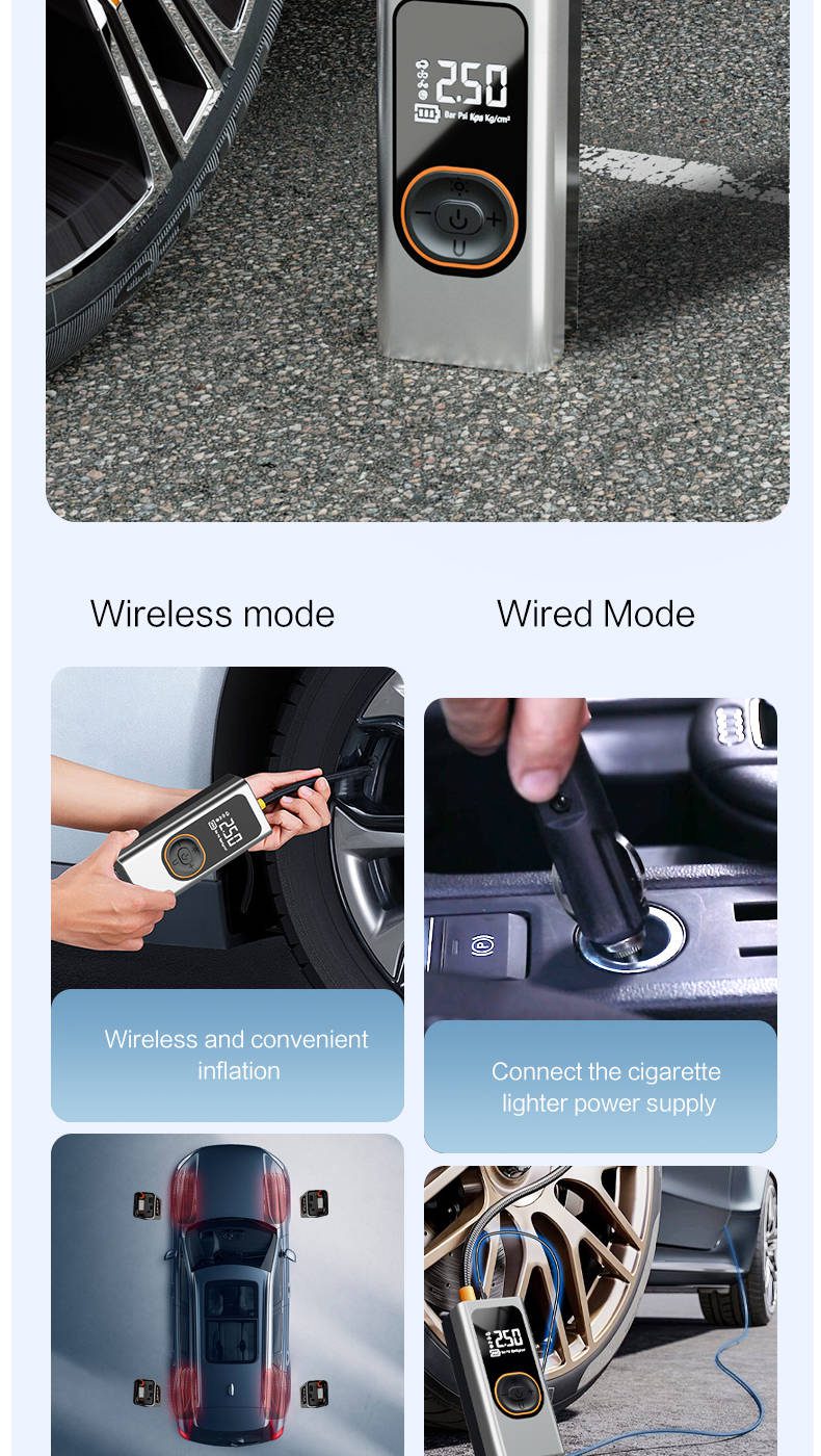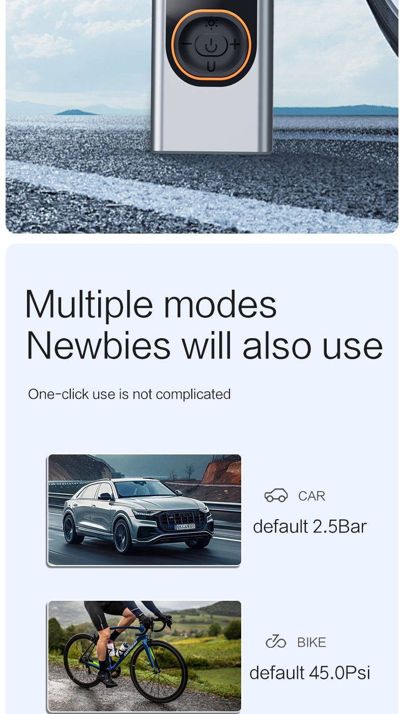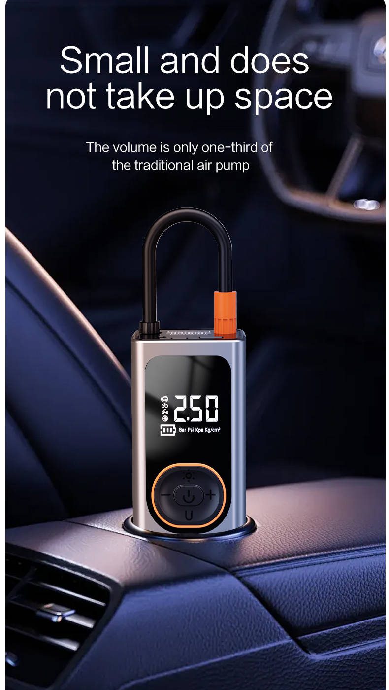 Portable Air Compressor 150 PSI – Multifunctional Electric Pump with LCD Display, LED Flashlight and 6000mAh Powerbank – Mini Compressor for Car, Bike, Motorcycle, Scooter and Balls
