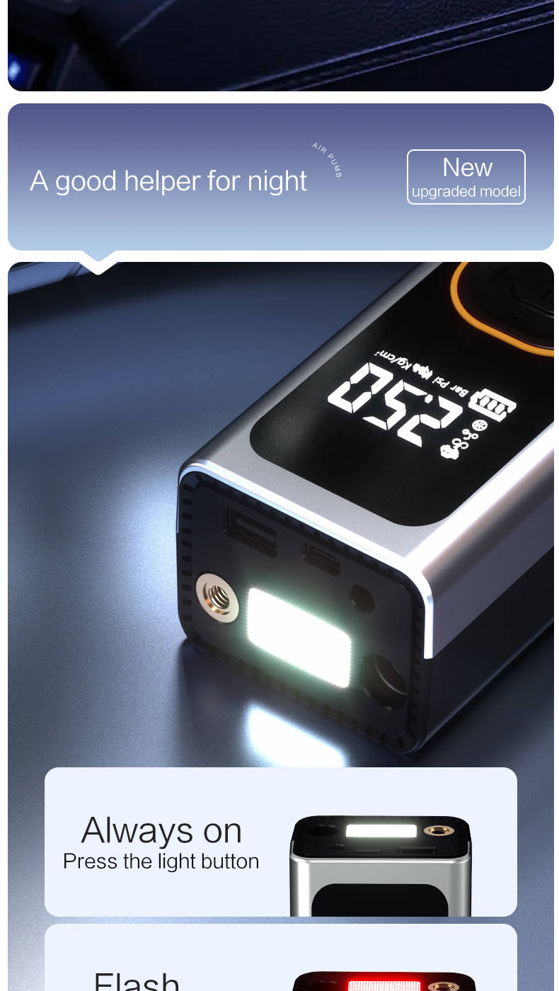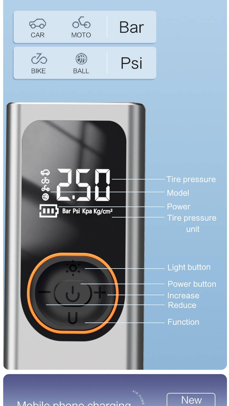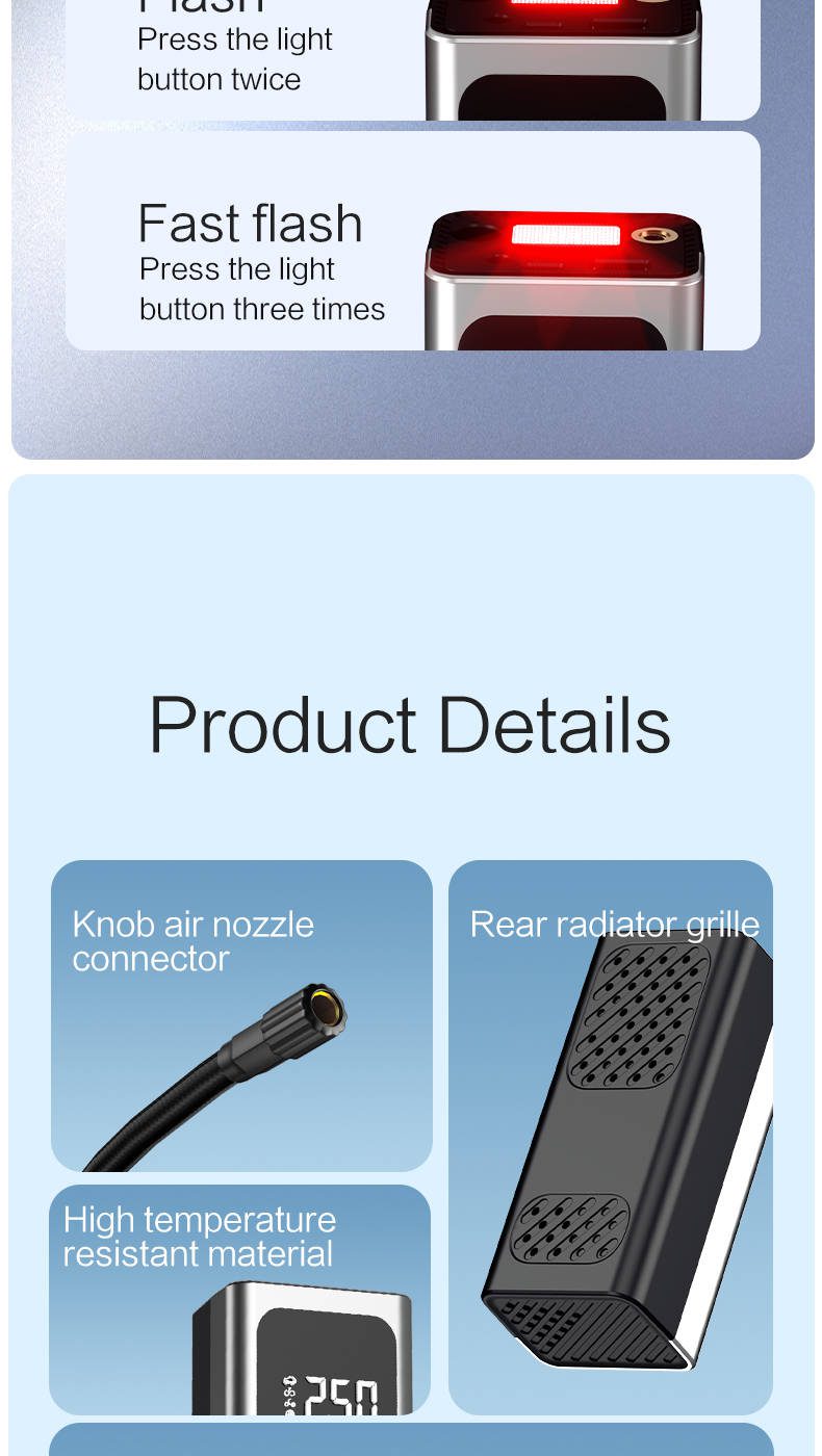 Be the first to review “Portable Air Compressor 150 PSI – Multifunctional Electric Pump with LCD Display, LED Flashlight and 6000mAh Powerbank – Mini Compressor for Car, Bike, Motorcycle, Scooter and Balls” Cancel reply