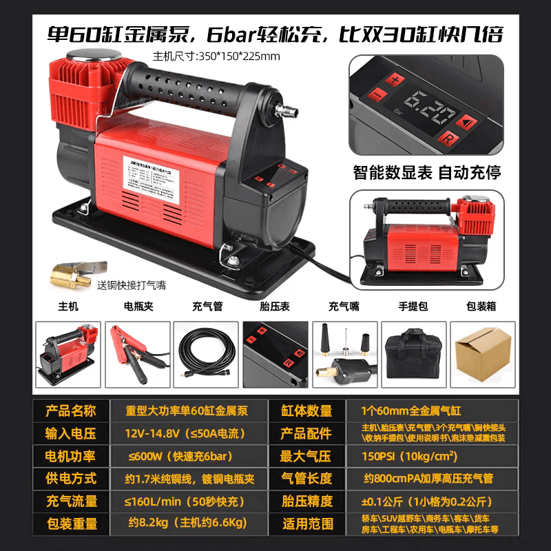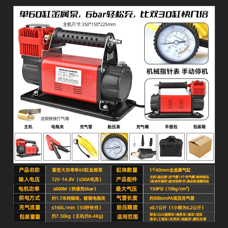 Heavy Duty 12V Air Compressor 60mm Single Cylinder 160L/MIN 150PSI