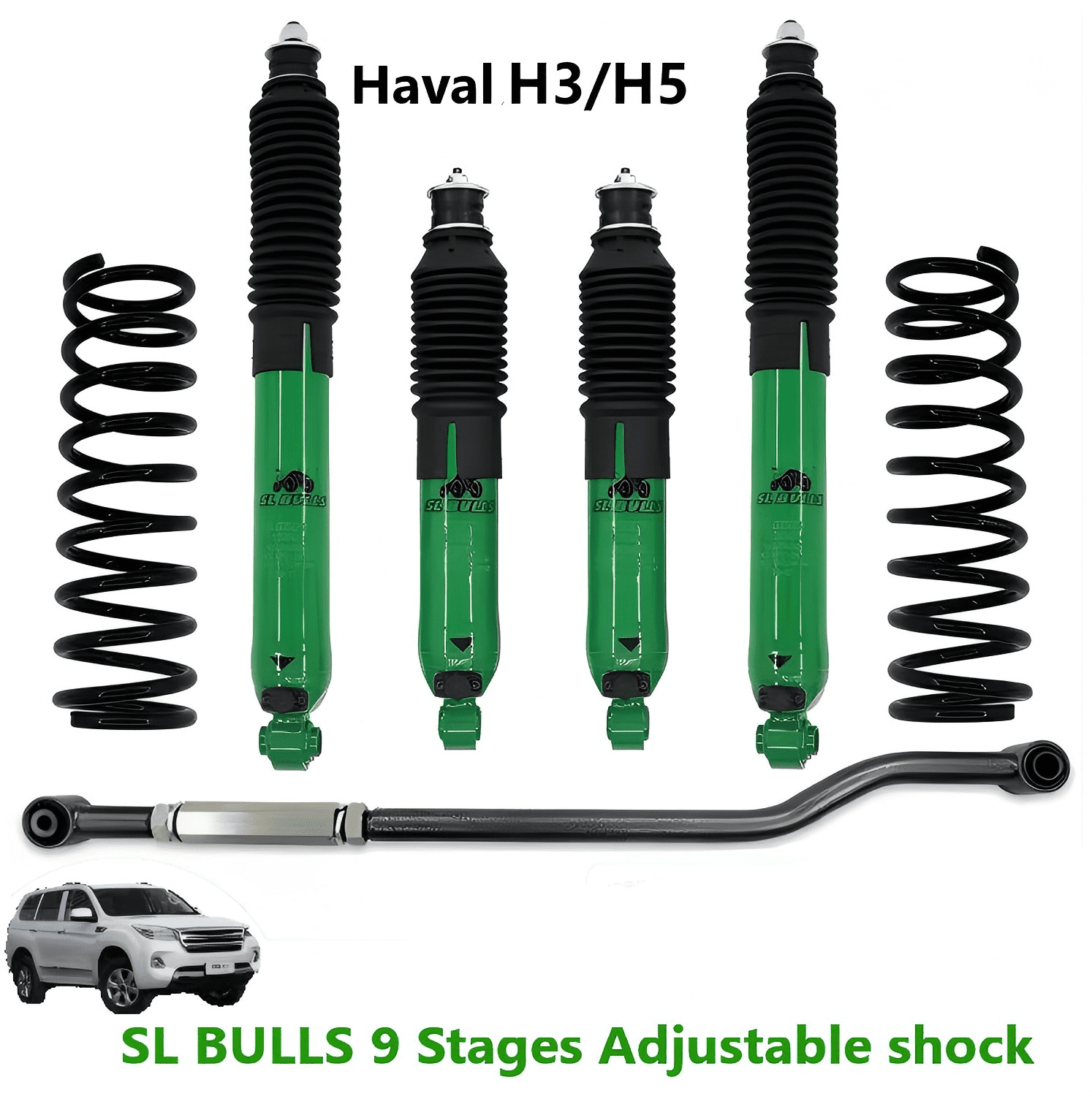 The Haval H3, H5 ,H9,models feature the SL BULLS 9-stage adjustable shock absorbers